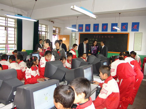 9月10日,2007中國互聯網協會互聯網公益日活動向青海省湟中縣上新莊中心小學捐助的由20臺聯想揚天電腦組成的電腦網絡教室正式建成并投入使用,在教師節之際,為該校教師、學生送上了一份厚禮。