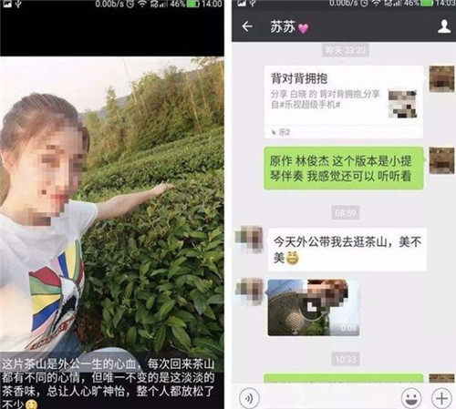 后來,蘇蘇說要忘記這件事情,決定回老家散心,順便陪陪外公外婆。在這期間,蘇蘇還一直給小王發自己陪外公去采茶的照片,兩人相聊甚歡。