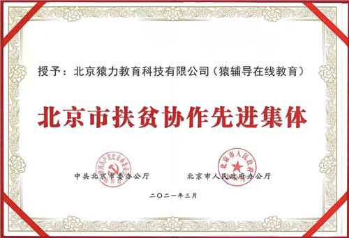 猿輔導榮獲“北京市扶貧協作先進集體”稱號