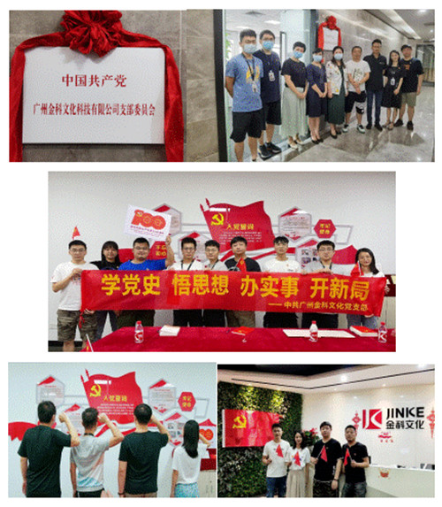 金科文化的子公司廣州金科文化黨支部正式成立,舉行了揭牌儀式。為慶祝中國共產黨建黨100周年,廣州金科黨支部開展了別開生面的黨史教育活動。6月28日下午,廣州金科黨支部以“ 學黨史、悟思想、辦實事、開新局”為主題,組織黨員職工集中聆聽黨史故事、開展分組討論和主題朗誦等活動加強學習。會后,全體黨員重溫入黨誓詞。此外,廣州金科黨支部還召集了黨員錄制視頻,向黨的生日送上祝福,視頻內容選入廣東省游戲產業協會專題特輯。